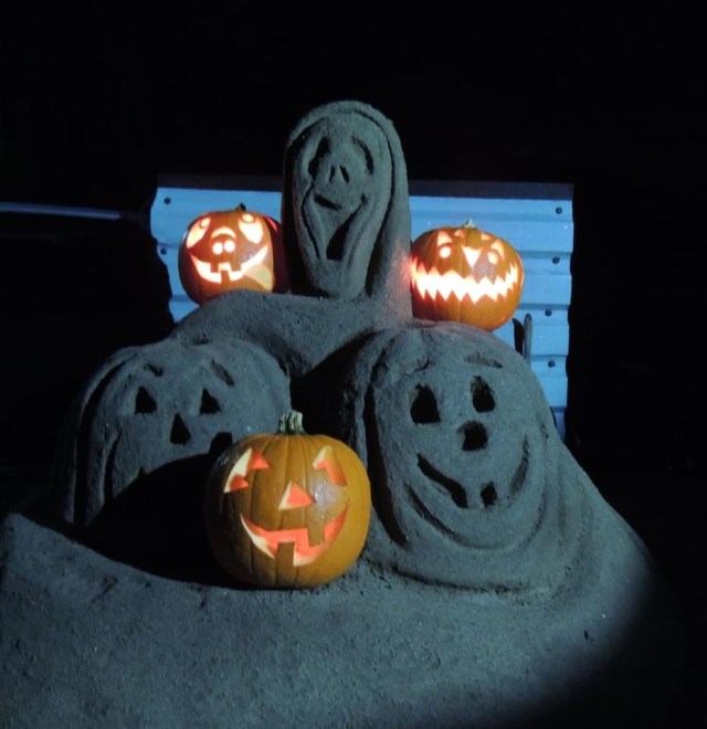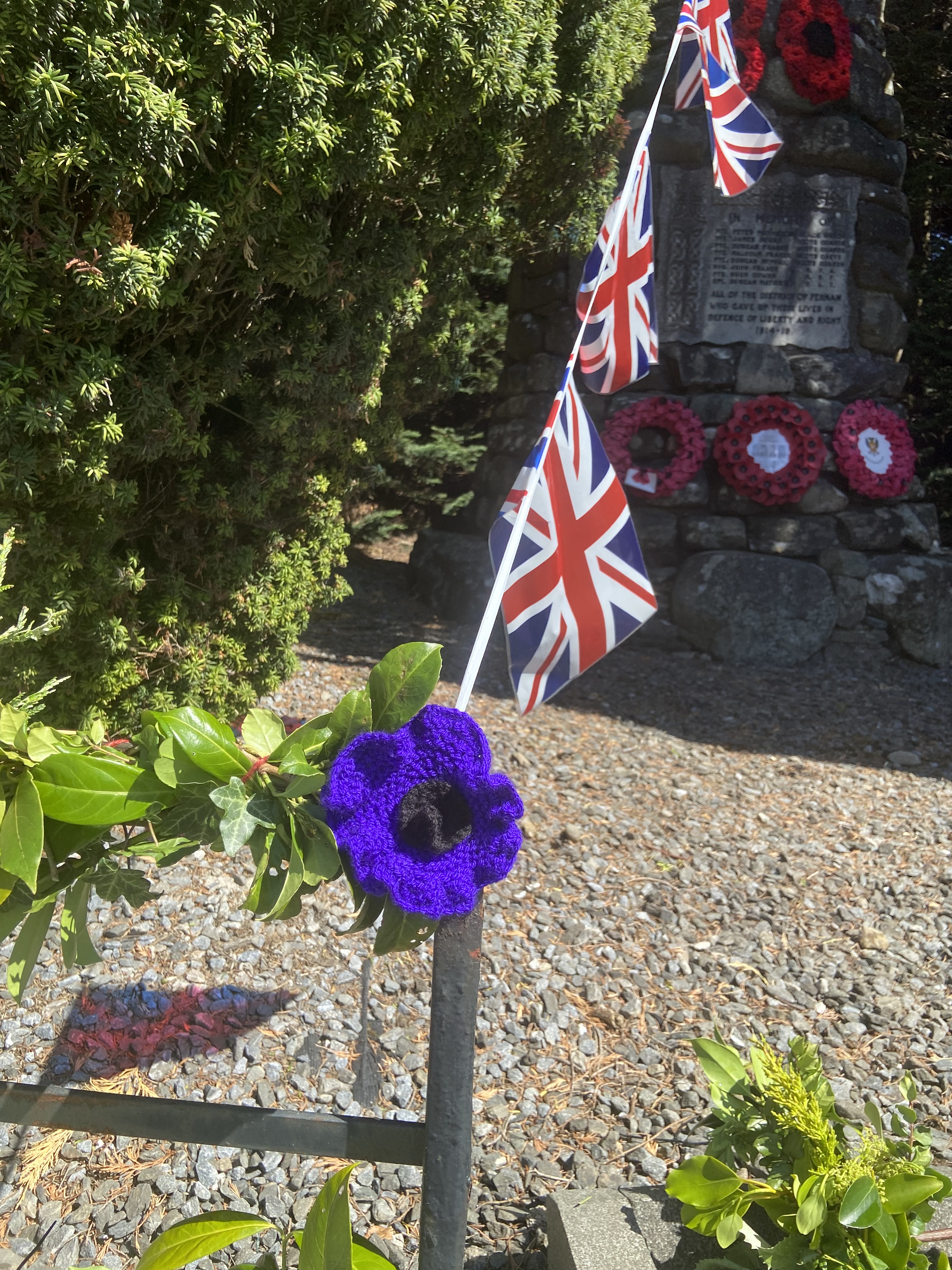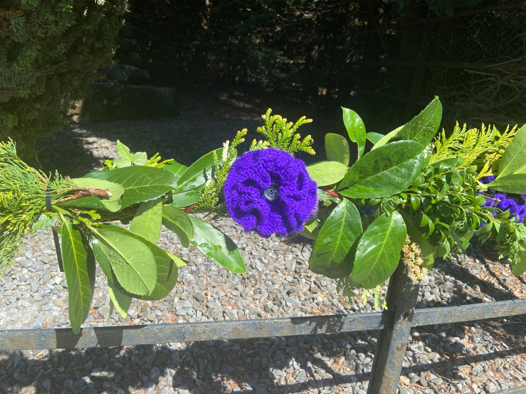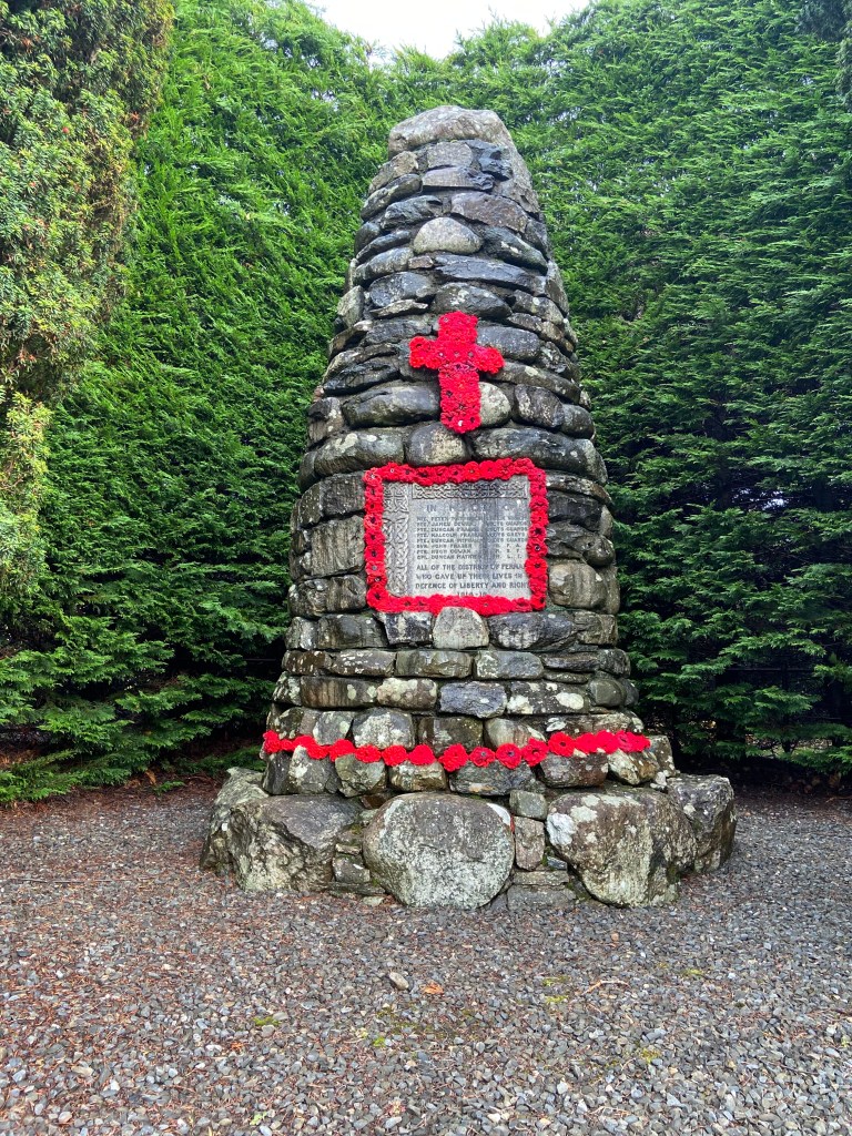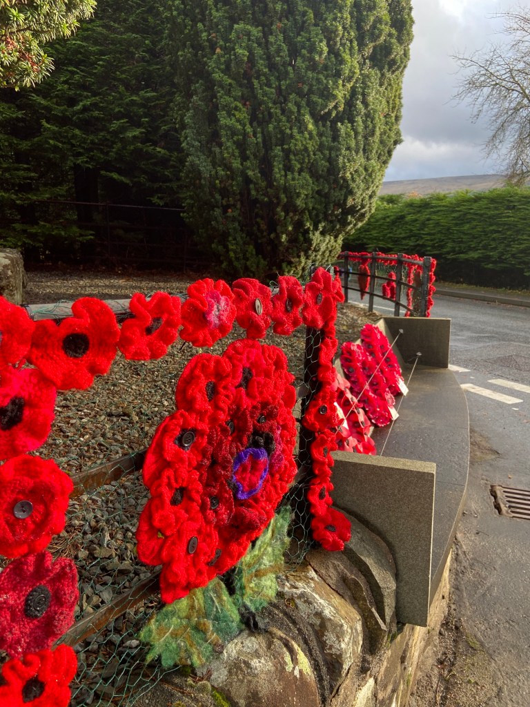 The war memorial itself looked like a beacon of warmth in the gloom, having been ‘dressed’ in hundreds of bright red poppies by Cath, and it continued to catch the eyes of passing motorists for the next few days.
