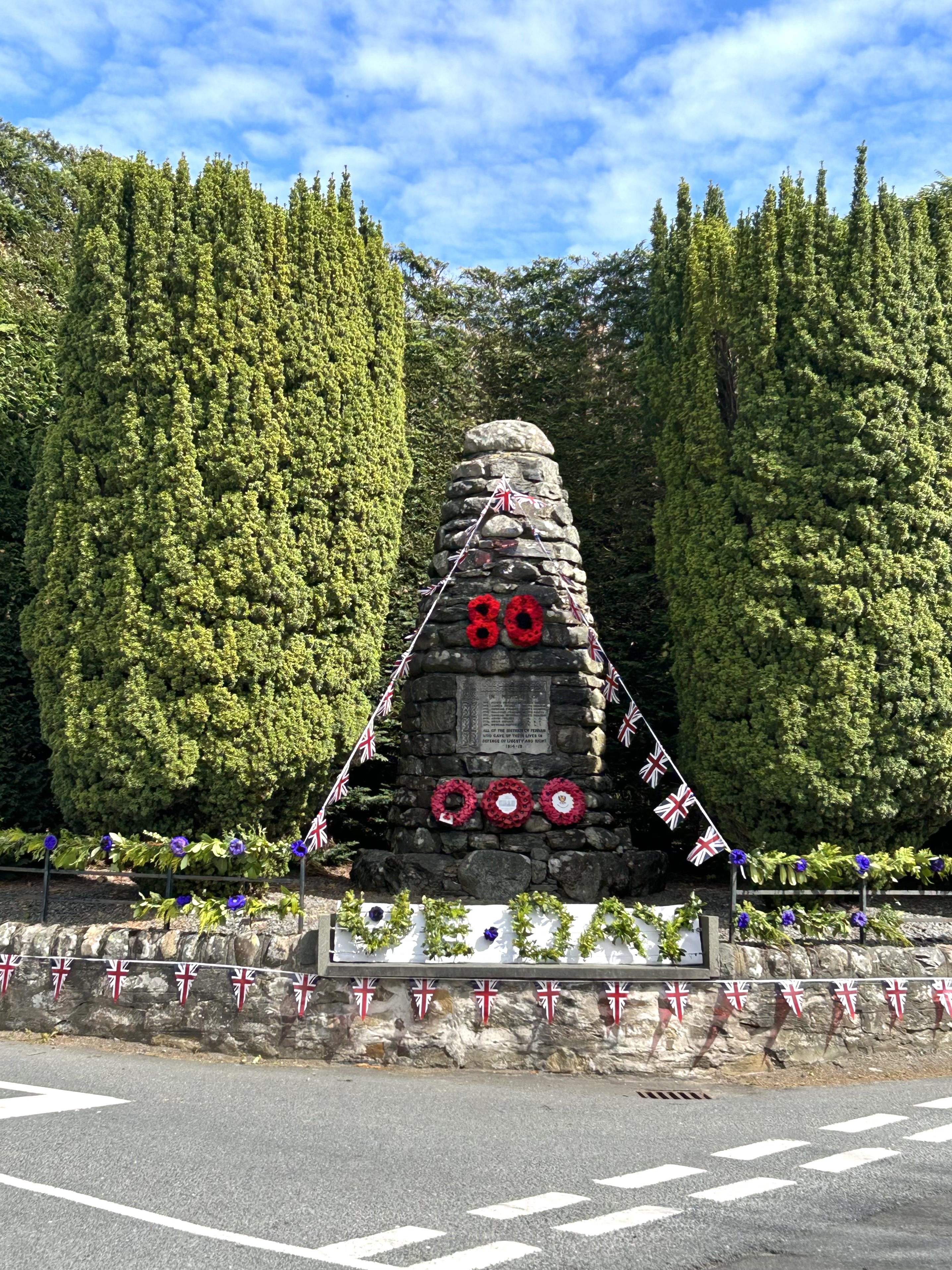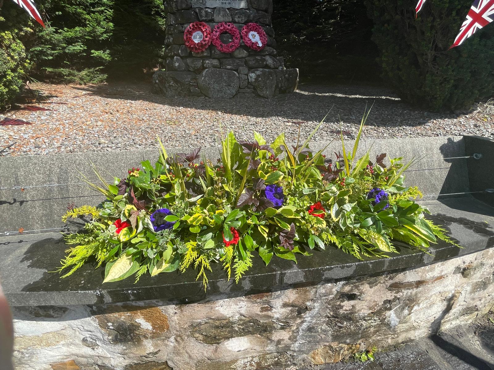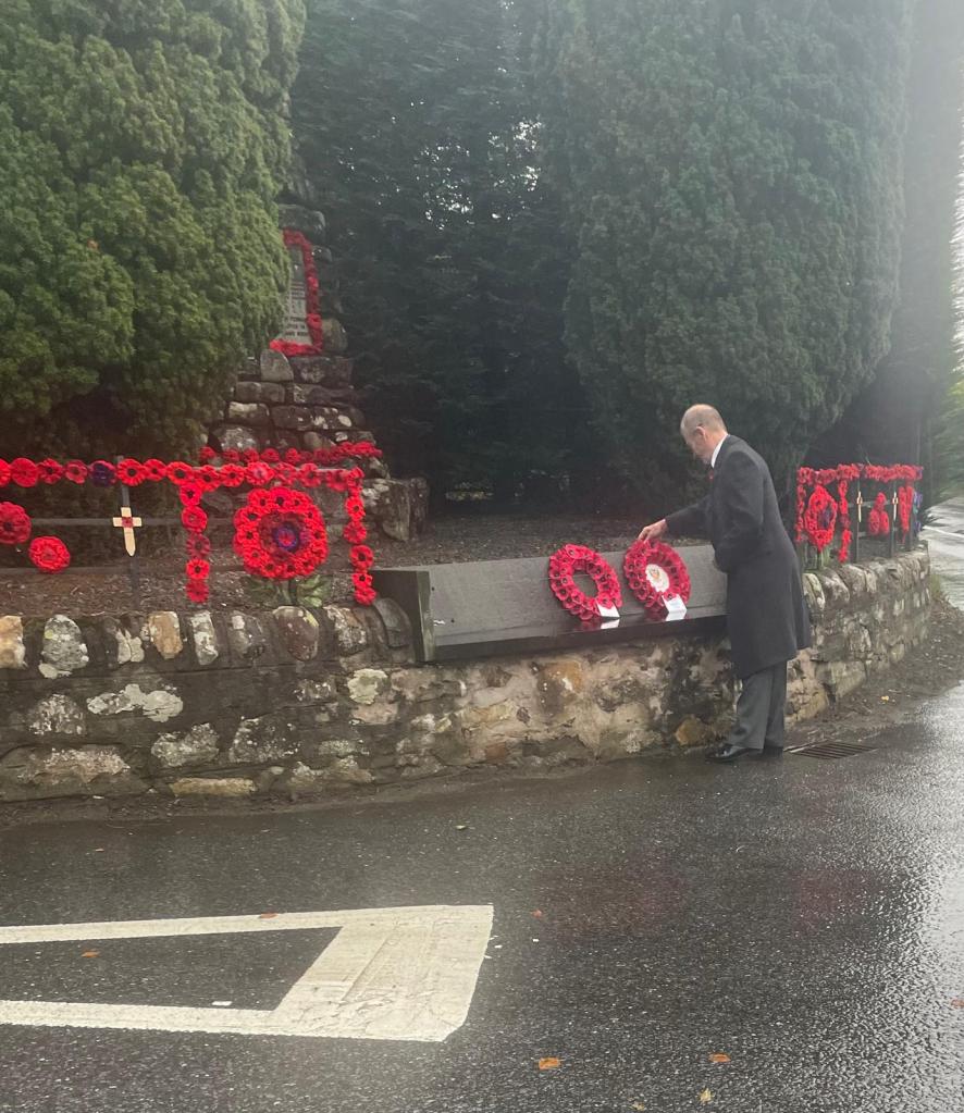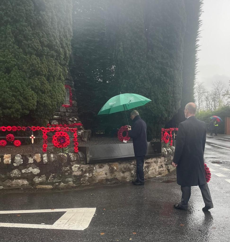 Many thanks to all who helped out on the day, from decorating the Memorial, to taking the service, laying wreaths, managing the passing traffic, making tea and coffee and, of course, for holding umbrellas for others!