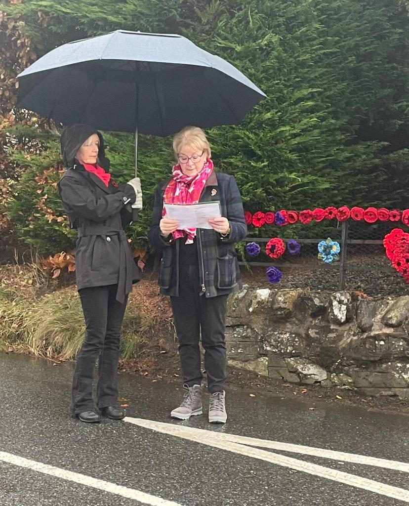 Despite the rather gloomy and wet day, a good number of local residents gathered at the war memorial for a short service on Remembrance Sunday. The service was led by Shirley Shearer and wreaths were laid by Alistair, John and Fiona.