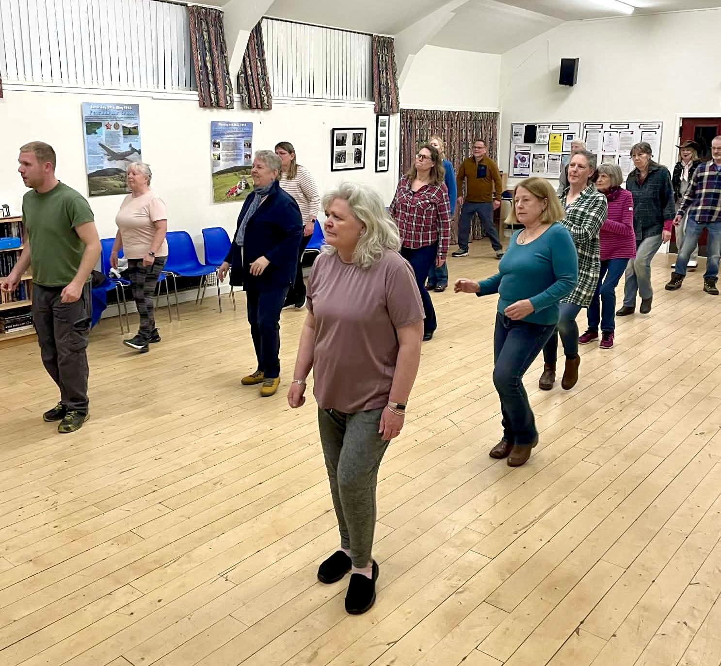 After a long break, line dancing has returned to Fearnan! Janice of Dust ‘n’ Denim asked, and Fearnan “stepped up” with energy and enthusiasm.