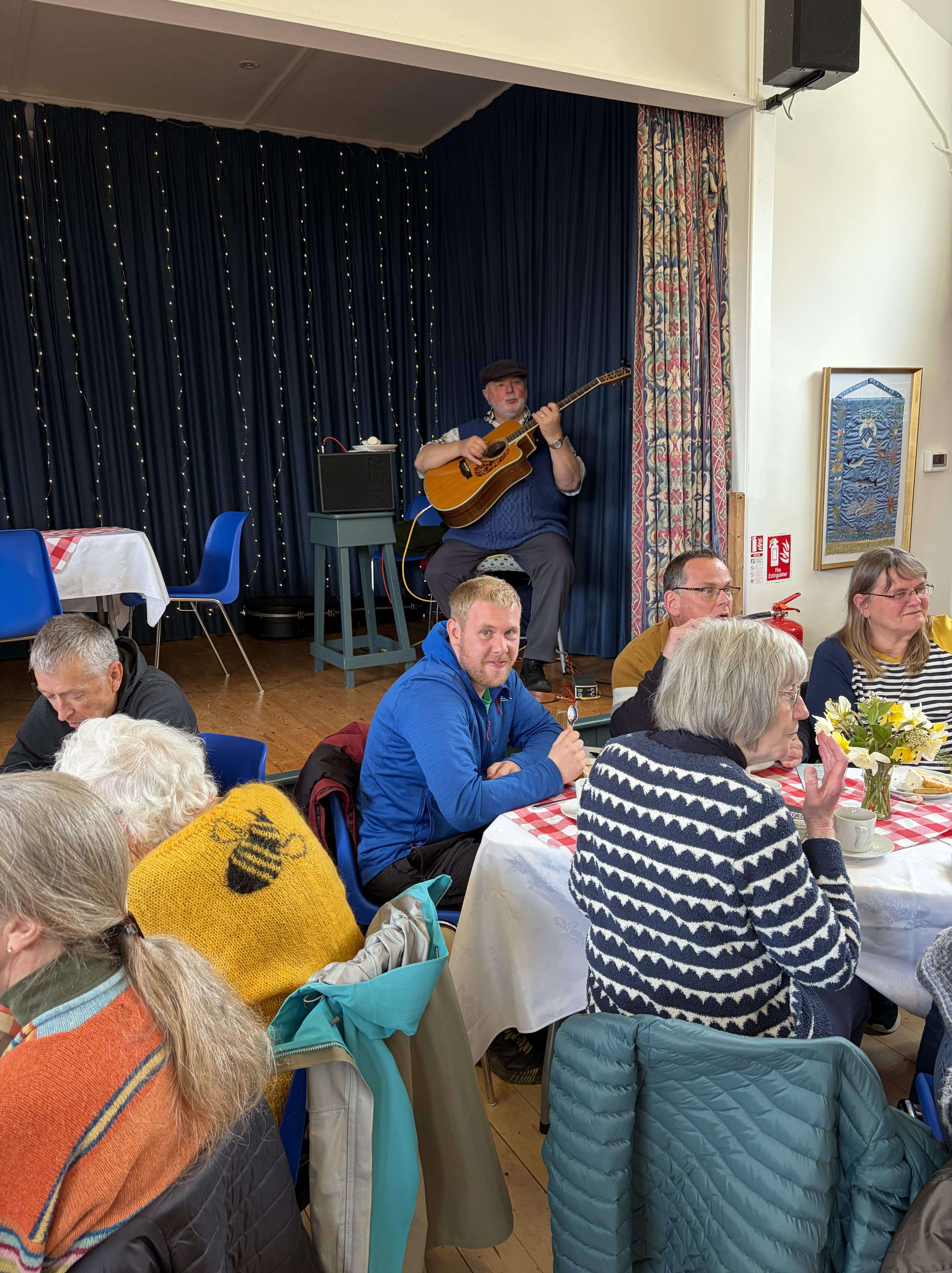 The event, which was well attended, was indeed very convivial with a lovely atmosphere, made even more special by the live music and excellent set played by Doug Law, our local guitar maestro. As ever, our bakers had provided a wonderful afternoon tea for all to enjoy.