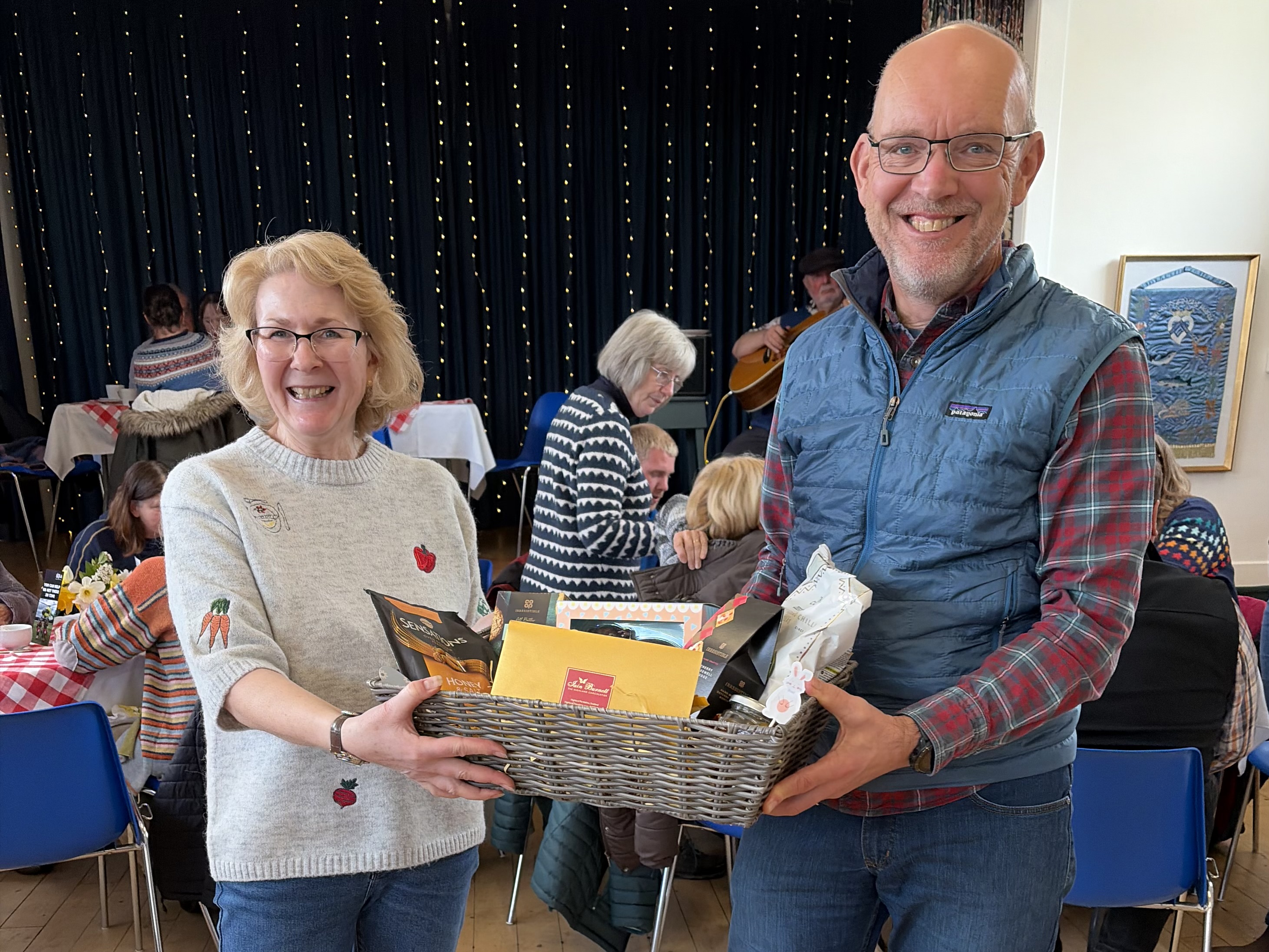 Thanks to the generosity of the Courtyard Shop, Aberfeldy Co-op, and Iain Burnett Highland Chocolatier, there was a raffle with two hampers of goodies as prizes. The winners of the hampers were Alistair Grier and Gayle Olivier.