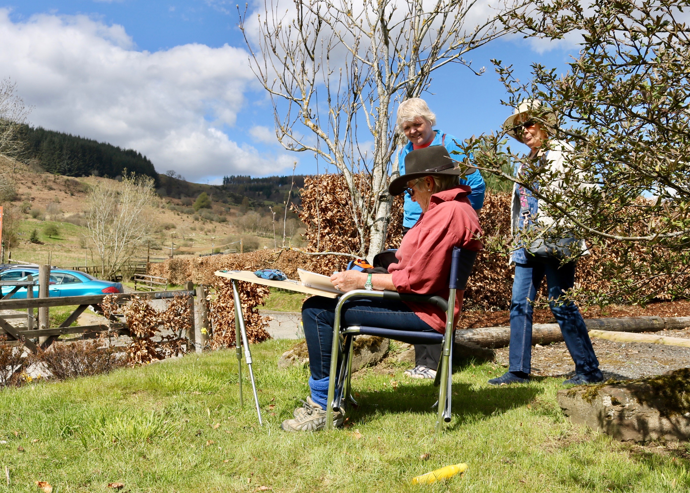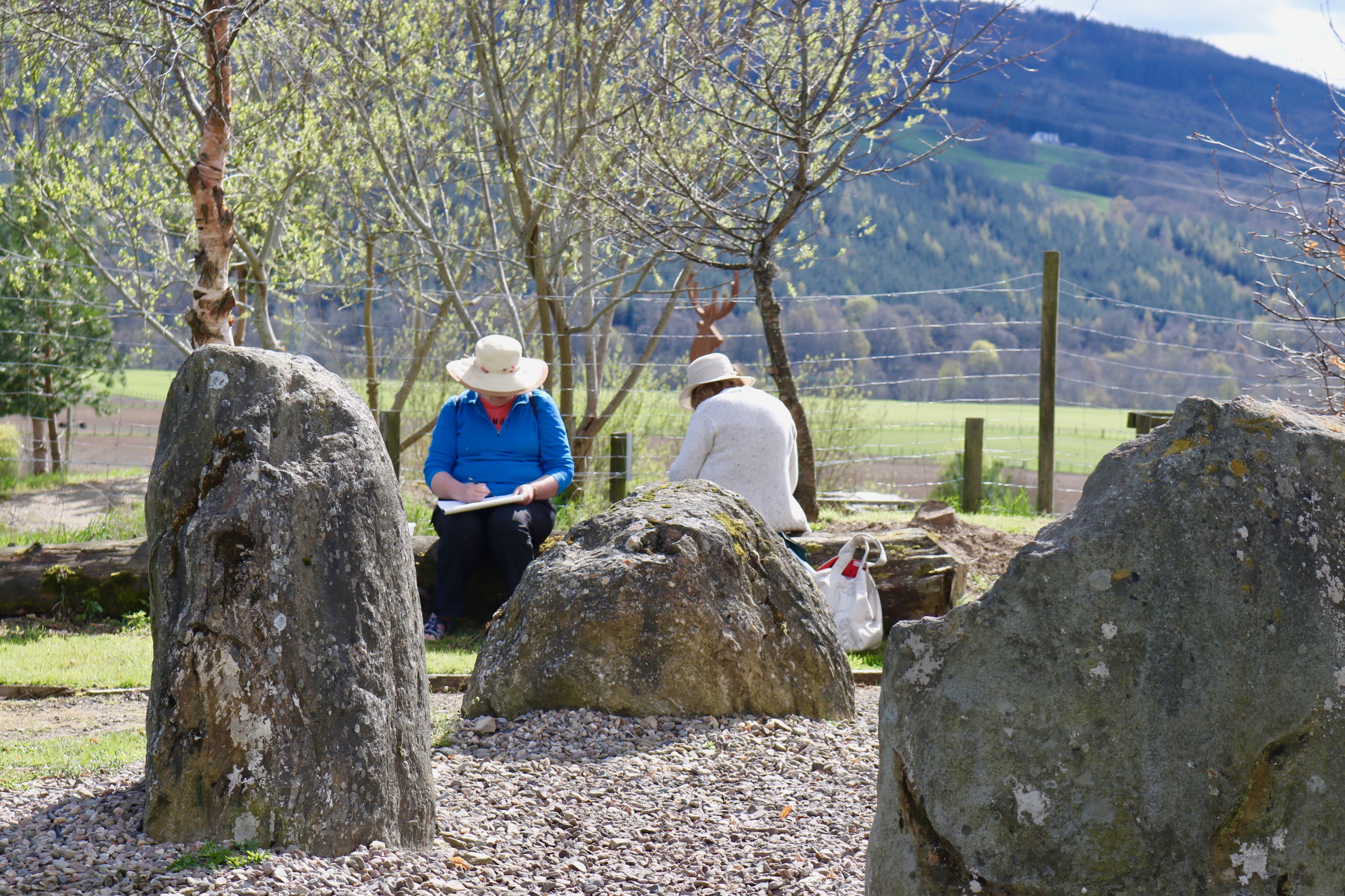 This month, Fearnan Art Club has been getting out and about and members paid a visit to Highland Safaris at Dull for the first of this year’s outdoor sketching and painting sessions. It was a glorious day with wonderful blue skies and, after a brief consideration of where in the world they should go next, they got down to some serious work.