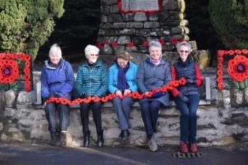 Thank you to everyone who made a contribution to the Poppy Project, and a particularly big thank you to Cath McGregor for being the inspiration and designer behind this special project.  A very small number of our knitters, with Cath in the middle looking bashful, are pictured at the set up of poppies on the memorial on Saturday.