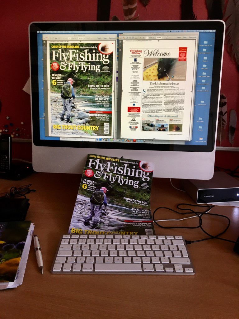 Hazel has sent a picture of FlyFishing & FlyTying magazine on her computer at home.