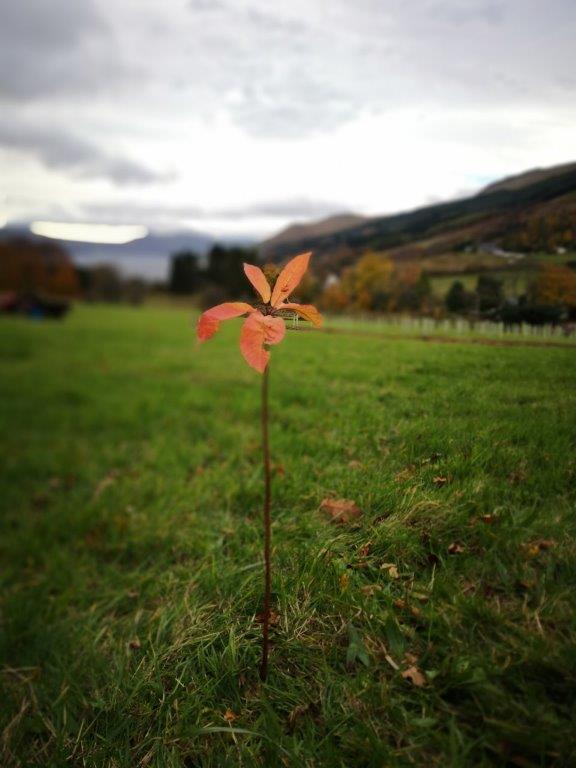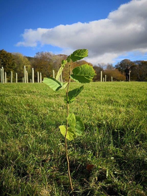 Our woodland is planted with a mix of 17 different native species, specific to this area and so most suitable for local native wildlife. We took delivery of over 1,300 young trees in Oct 2018 (the year we moved in) and started planting from Oct until Dec 2018, but then had to wait for the land to thaw a bit before finishing them in spring 2019. They were all planted as small trees, in tall thin plugs for their roots and protected by tubes. The tree examples below are Scots Pine, Bird Cherry and Hazel.