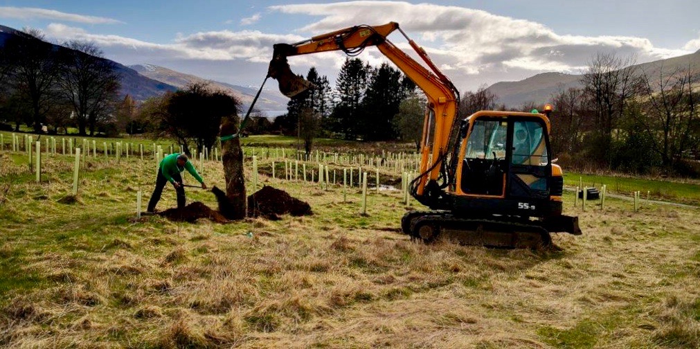 And Trevor has been ‘planting’ huge tree trunks in the woodland to act as perches for birds (hopefully lots of owls to manage the explosion of field voles!) and feeding stations, plus the stumps and roots for additional wildlife habitat. These were from the trees that had to be cut down by SSE as they were too big and too close to their wires – so all have been put to good use.