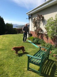 Lesley reports that life goes on as near normal as possible. We are so lucky to live here, dog walks on our doorstep and a garden needing constant attention! Potatoes, onions and shallots are all in and John has it all under control.