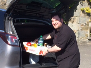 The team in the Courtyard also continues to keep local residents supplied and Friday afternoons are busy with folk coming to collect their orders. Here’s Mike loading goodies into the back of Elaine’s car.