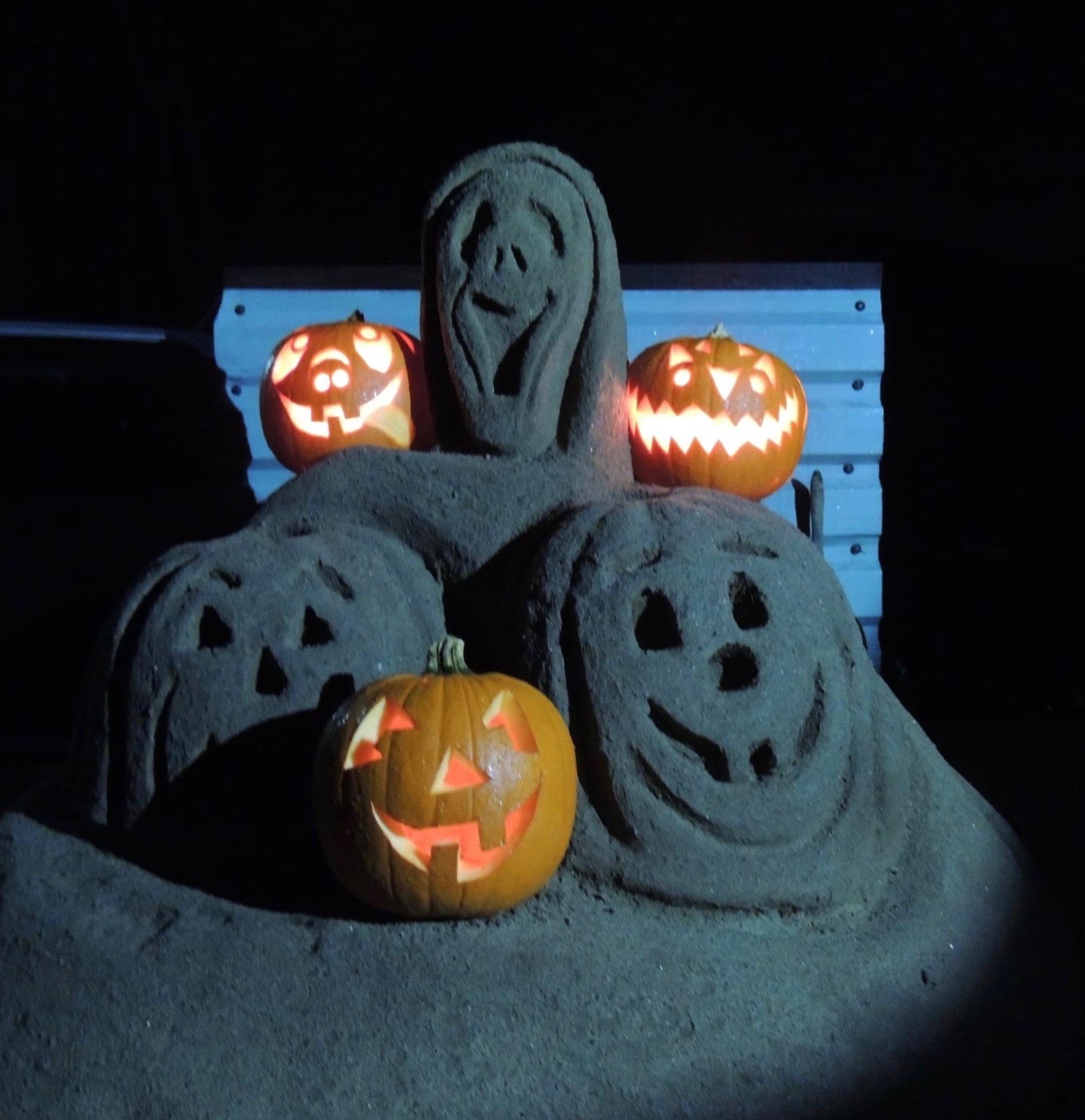 If, dear reader, you fancy some other scary reading or watching, there’s always The Haunting of Hill House by Shirley Jackson and The Signal Man by Charles Dickens. Or you could watch Stanley Kubrick’s unnerving The Shining, or The Blair Witch Project by Daniel Myrick and Eduardo Sanchez. Alternatively, you could just take a walk down to the lochside after dark and just check that the characters in Doug Law’s spooky sand sculpture are still where he put them and they haven’t gone walk-abouts ……….