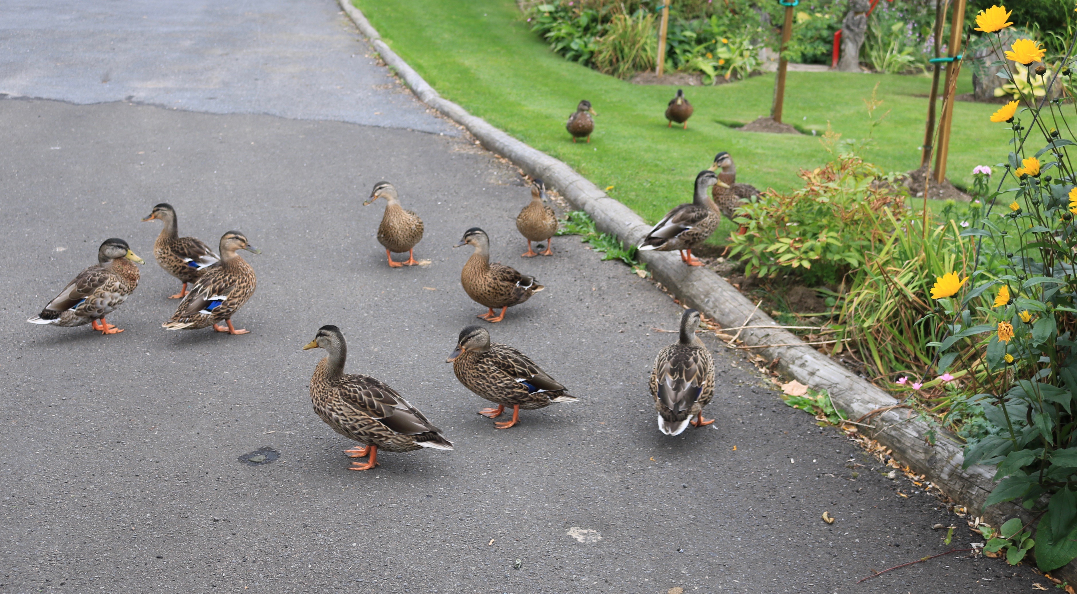 The road is always a worry, although Doug is doing his best to keep the ducks safe.