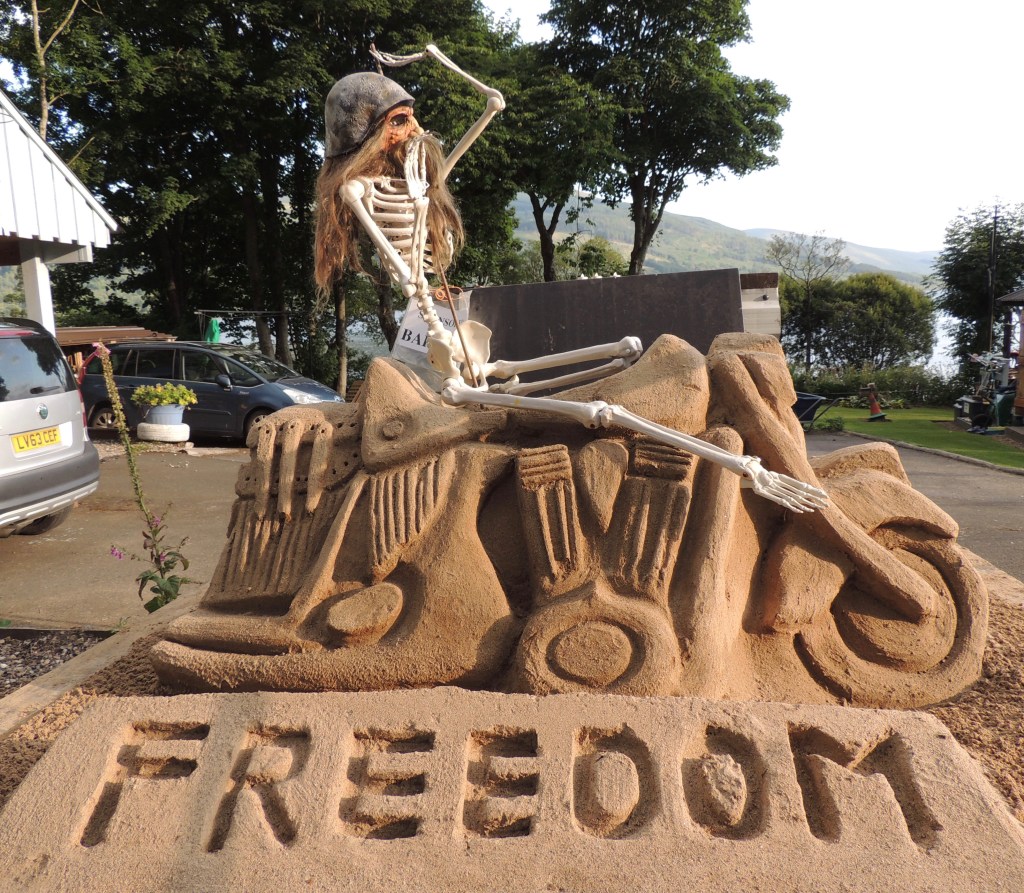 Doug (aka the Sandman) has been creating topical sand sculptures for our entertainment and amusement since the start of lockdown, and after the lifting of travel restrictions they have also been providing photo opportunities for passing tourists. Here’s a wee selection from the last 18 months: