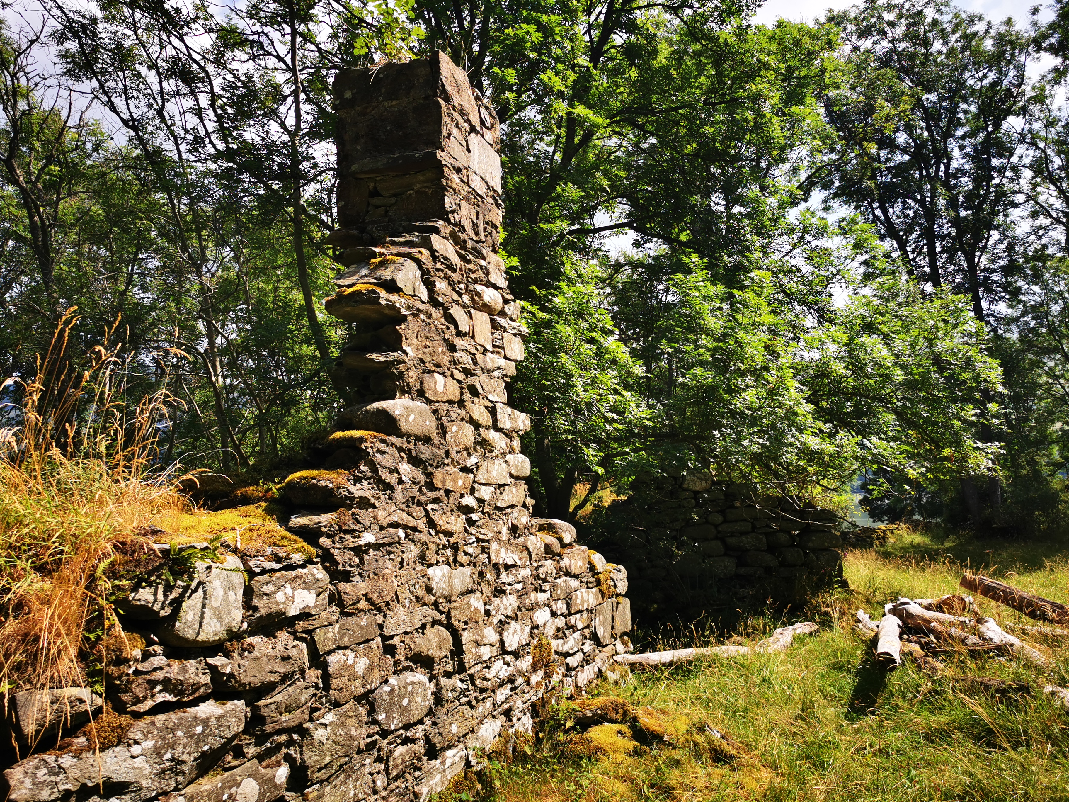 (It should be noted that the photos were taken on Stuart’s second visit by boat to the village – the first visit ended abruptly when he encountered a cloud of bloodthirsty clegs who couldn’t believe their luck when a human in shorts entered their domain. He returned the next day more suitably attired (hazmat suit?) and was able to have a good look round, take photos and explore the old graveyard.)