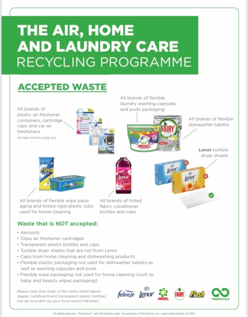 Fearnan is once again burnishing its recycling credentials, and very shortly you will be able to recycle the flexible pouches for all brands of coffee beans and ground coffee, and all brands of air, home and laundry packaging, including Lenor (but only Lenor) dryer sheets.