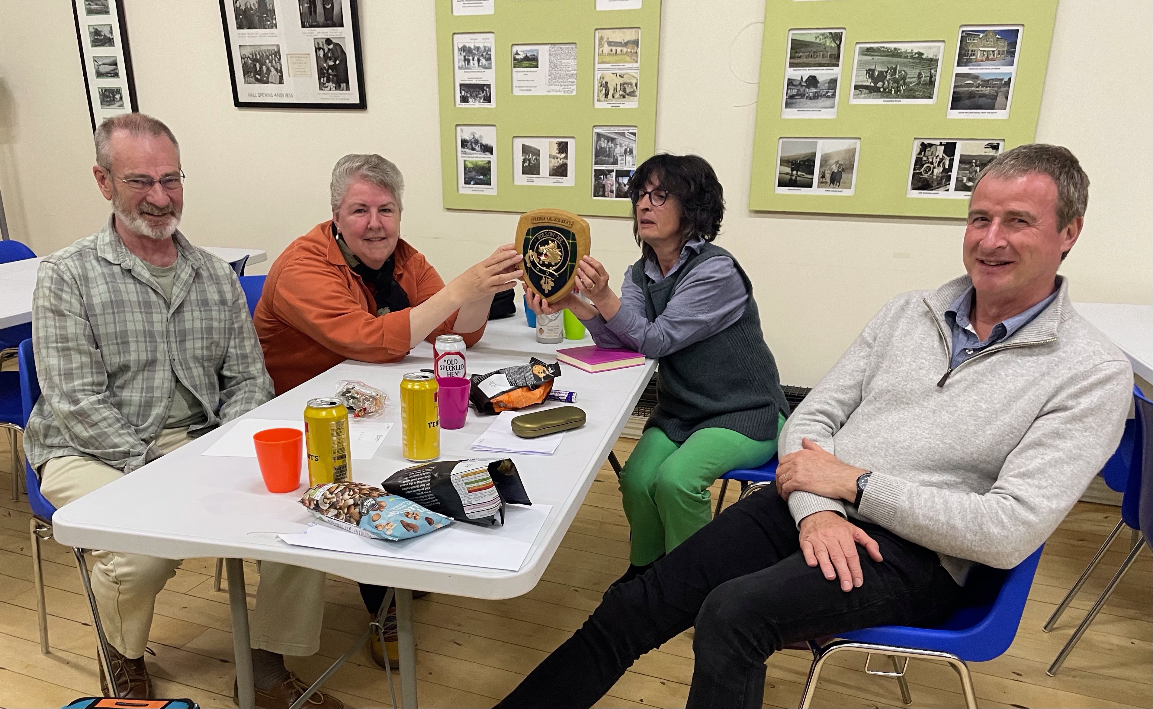 The autumn winners, Kathy, Kit, Alistair and Linda had to relinquish the quiz shield and hand it over to the well-deserved winners Judith, John, Alistair and Pat.