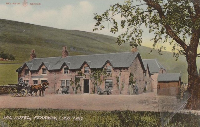 His daughter Dolly took on the role of postmistress which she held from her youth until she retired in 1974. She also ran the shop which was busy enough at that time to require an assistant and, on a Friday, the hotel bus would be loaded with groceries and set off for Glen Lyon with Dolly at the wheel to deliver orders and to sell goods off the back of the bus.