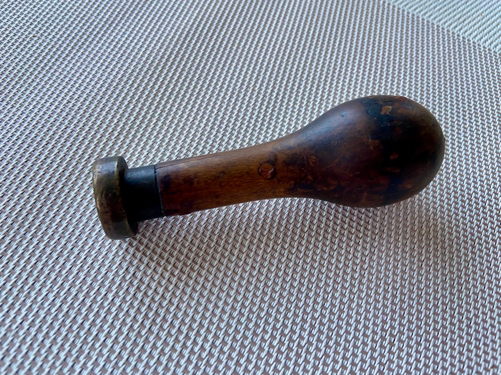 When Ian McGregor was writing his book Fearnan, The Story of a Highland Village of Northern Perthshire and setting up the Fearnan archive, he was given an old hand stamp that had been used in the Fearnan post office to frank local mail. It was gifted by Mary Robb, a former village postmistress and was gratefully accepted as a memento of the fact that Fearnan once had a post office. It was put on display in Fearnan Hall for a few years. After that, it was carefully wrapped and put safely in the archive.