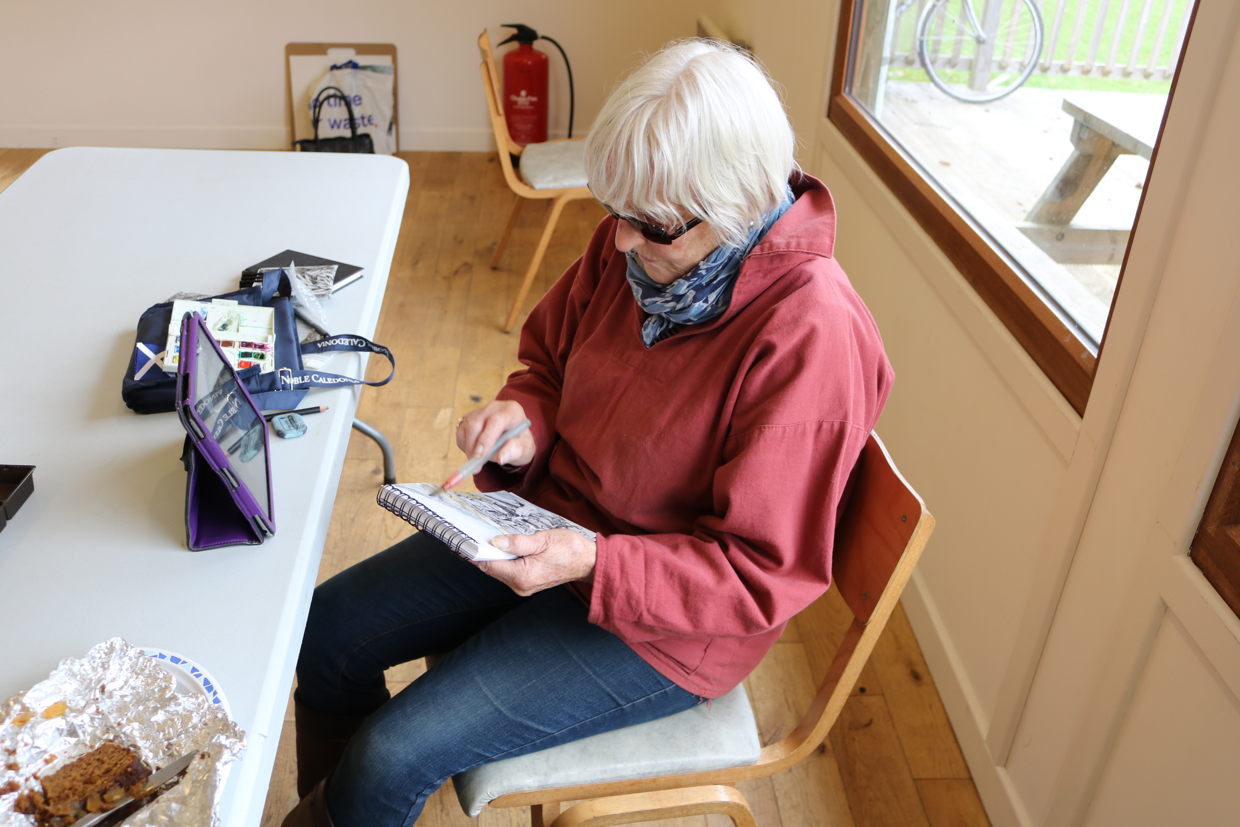 Clockwise from top left: Ian Marshall, Jo Millar sketching and also celebrating the 10th Anniversary of the Book Club, Joyce Halden with her husband Alistair, Patricia Tinto and special friend, Mary Robb with daughter Patsy.