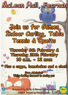 6th and 20th March: Games Mornings. The Mclean Hall offers two more Games Mornings this season, on the 6th and 20th March, after which there will be a break. Join Lesley and Frances between 10.00 and 12.00 for indoor curling, table tennis and quoits as well as homebakes, a cuppa and a chat.
